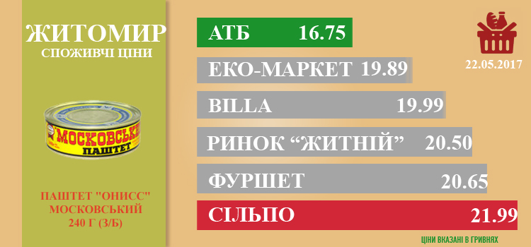 AТБ, пр. Миру, 15 А, Ринок "Житній", майдан Житній ринок, Сільпо, майдан Житній ринок, 1, Фуршет, вул. Вітрука, 9 а,Billa, пр. Миру, 15, ЕКО-маркет, вул. Мала Бердичівська, 2/7.