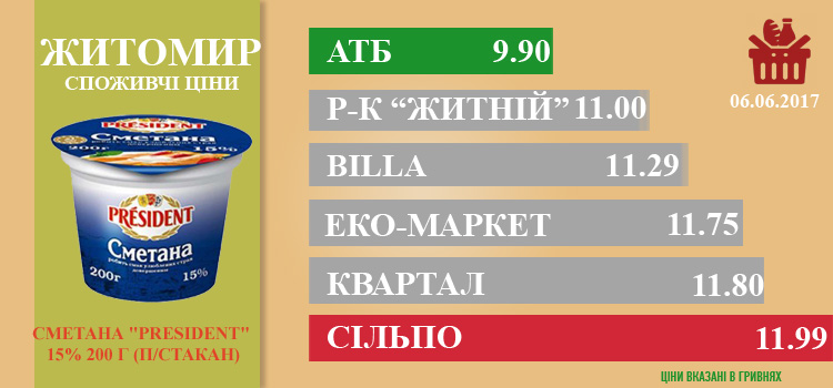 AТБ, пр. Миру, 15 А, Ринок "Житній", майдан Житній ринок,   ЕКО-маркет, вул. Мала Бердичівська, 2/7, Billa, пр. Миру, 15, Квартал, вул. Вітрука, 13, Сільпо, майдан Житній ринок, 1.