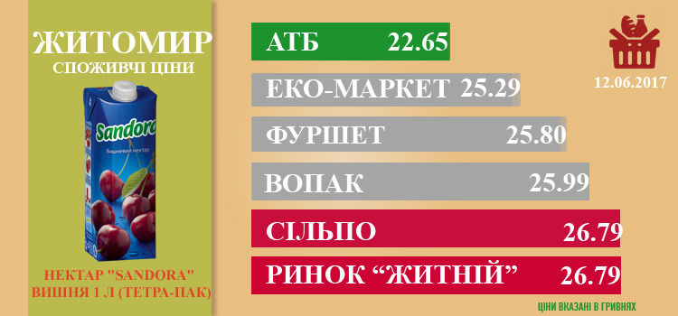 AТБ, пр. Миру, 15 А, Ринок "Житній", майдан Житній ринок,   ЕКО-маркет, вул. Мала Бердичівська, 2/7,Фуршет, вул. Вітрука, 9 а. 1, Сільпо, майдан Житній ринок, 1, Вопак, вул. Київська, 87.