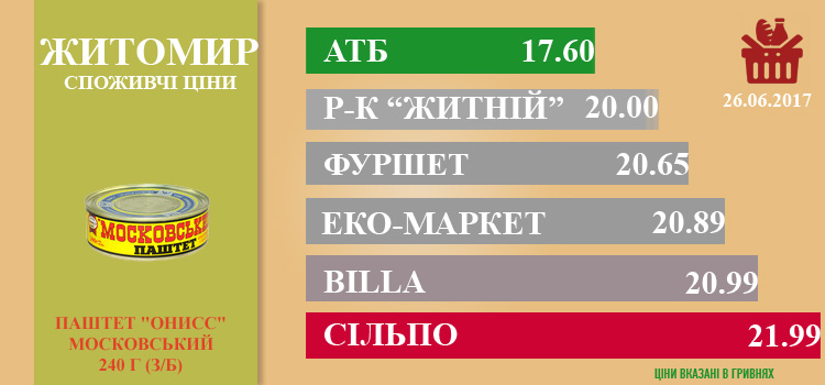 Ціни в Житомирі за 29.06.2017