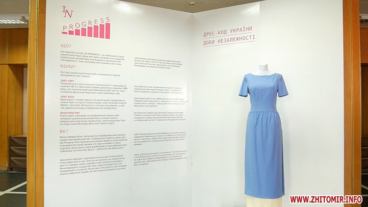 Виставка «IN PROGRESS. Дрес-код України доби незалежності» у житомирському драмтеатрі триватиме до 14 вересня і є безкоштовною для усіх відвідувачів.