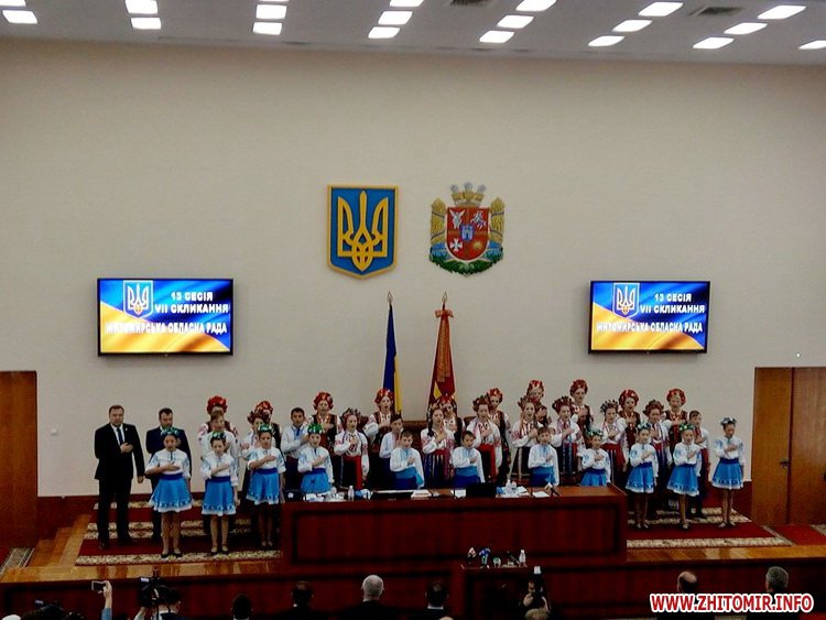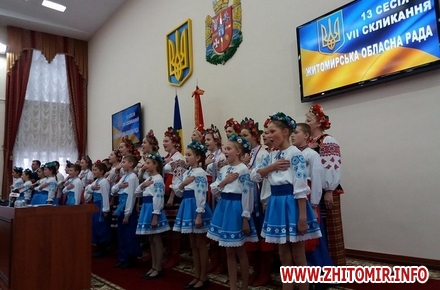 Після реєстрації голова облради оголосив, що за новою традицією гімн України виконуватимуть діти.