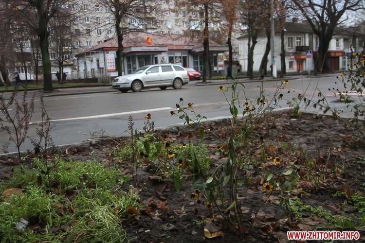 У місті ще можна побачити зелену траву та квіти, які продовжують, всупереч нічним заморозкам, не в’янути і бути такими ж гарними, як і влітку. А при такій сіро-зеленій зимі, як сьогодні за вікном, деякі житомиряни навіть можуть почати мріяти про ніжно-білу зиму з великими кучугурами снігу.