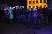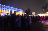 Після вітання мера Сергія Сухомлина на майдані Корольова розпочалася концертна програма, конкурси та розваги. Житомиряни танцювали та фотографувалися біля головної ялинки міста.
