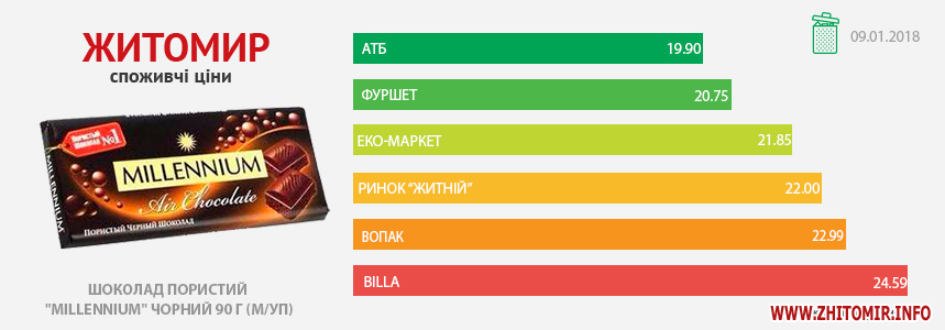 МОНІТОРИНГ ЗДІЙСНЕНО МЕТОДОМ КОНТРОЛЬНОЇ ЗАКУПІВЛІ, У МІСЦЯХ ПРОДАЖУ: AТБ, пр. Миру, 15 А, Ринок "Житній", майдан Житній ринок, ЕКО-маркет, вул. Мала Бердичівська, 2/7, Фуршет, вул. Вітрука, 9 а, Billa, пр. Миру, 15, Вопак, вул. Київська, 87