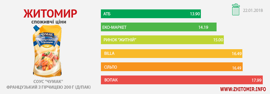 МОНІТОРИНГ ЗДІЙСНЕНО МЕТОДОМ КОНТРОЛЬНОЇ ЗАКУПІВЛІ, У МІСЦЯХ ПРОДАЖУ: AТБ, пр. Миру, 15 А, Ринок "Житній", майдан Житній ринок, ЕКО-маркет, вул. Мала Бердичівська, 2/7, Billa, пр. Миру, 15, Сільпо, майдан Житній ринок, 1, Вопак, вул. Київська, 87.