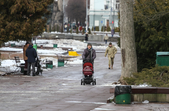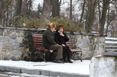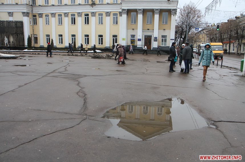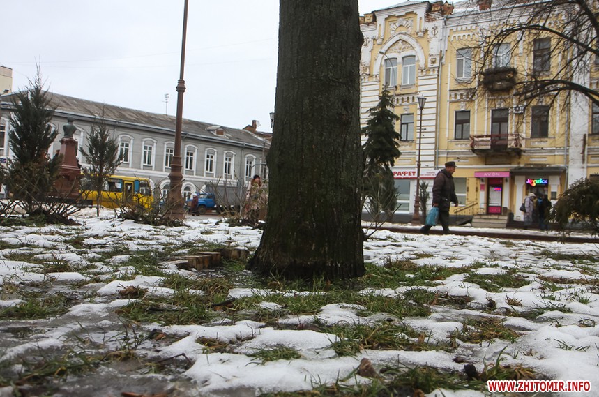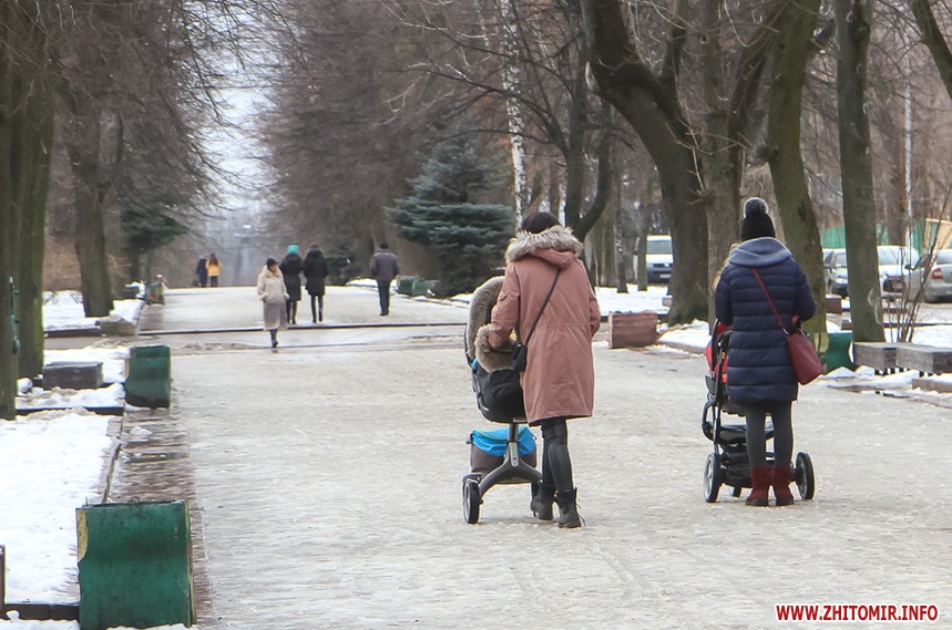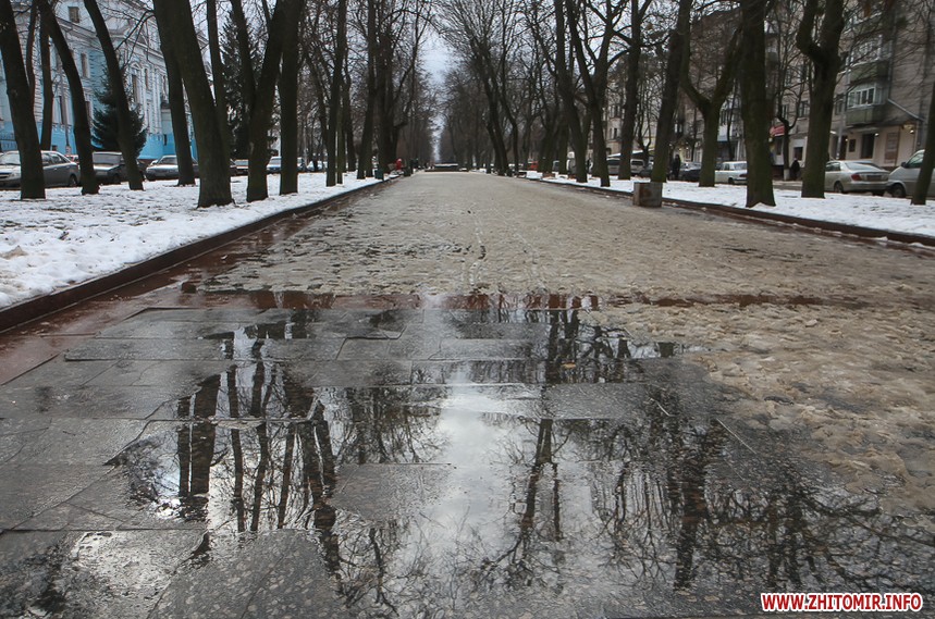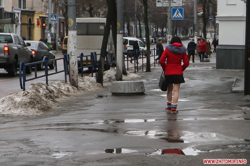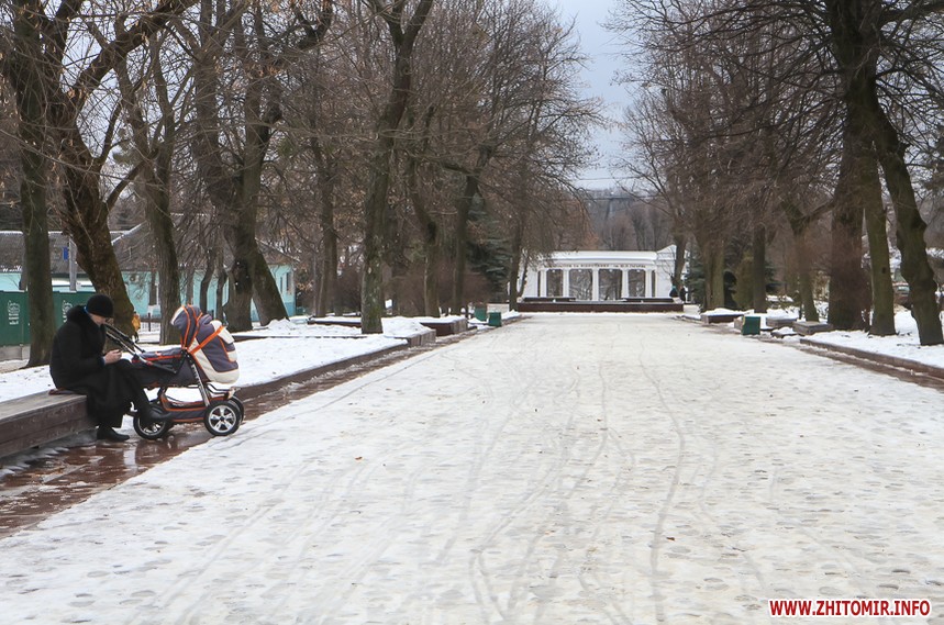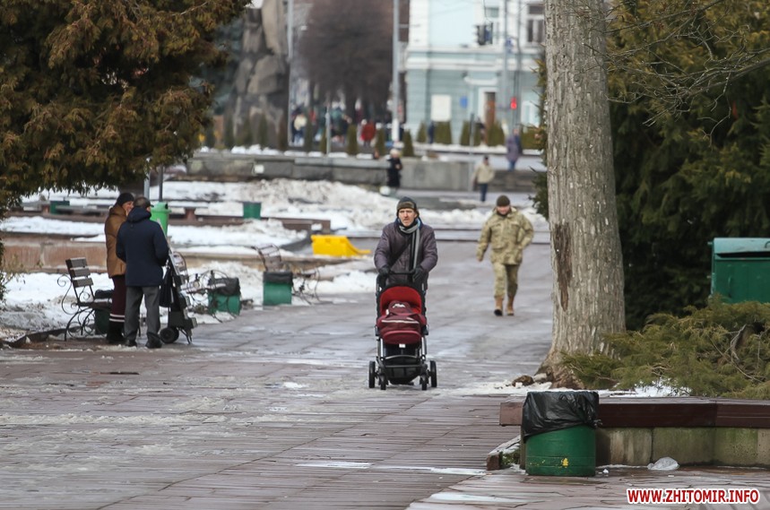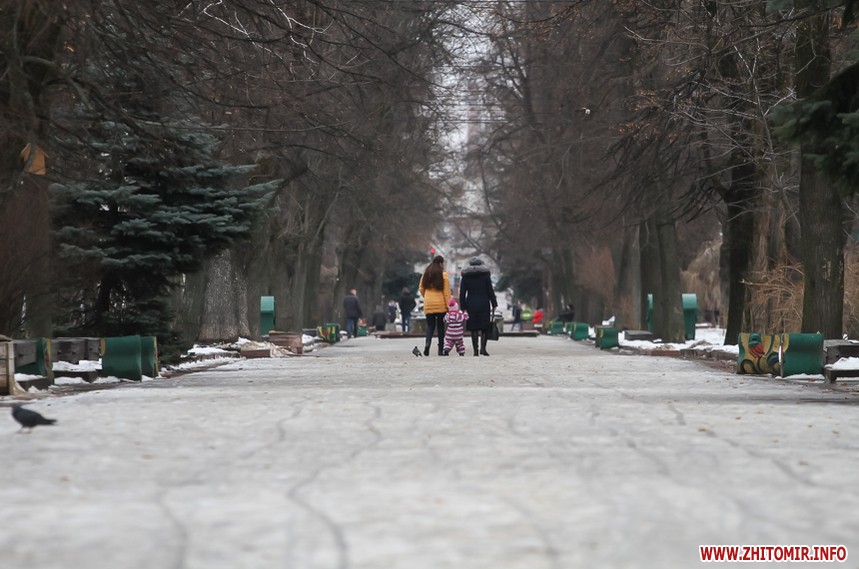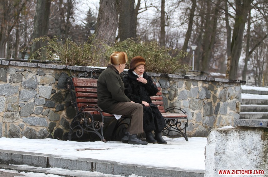 Неподалік розмістилися житомиряни, які відчувши потепління повиходили на вулиці, аби поседіти на лавках. Де-не-де можна зустріти містян, які поглянувши на незначне потепління, поскидали зимові куртки та шуби, одягнувшись геть по-весняному.