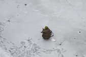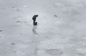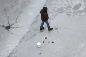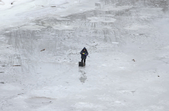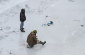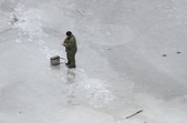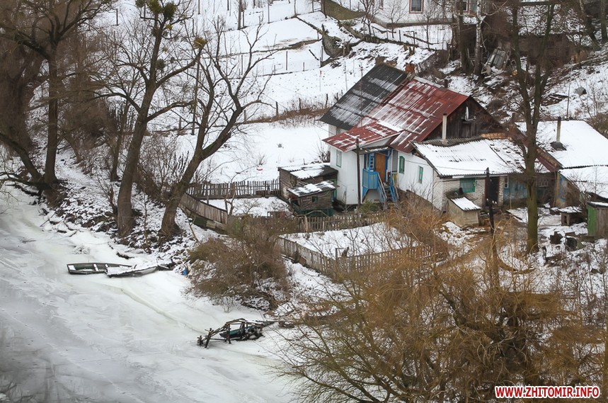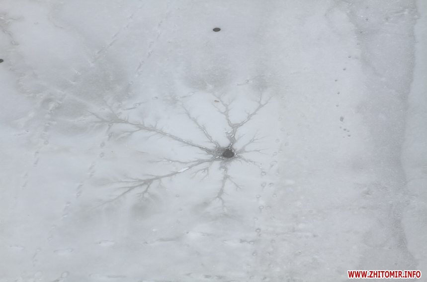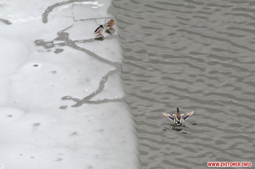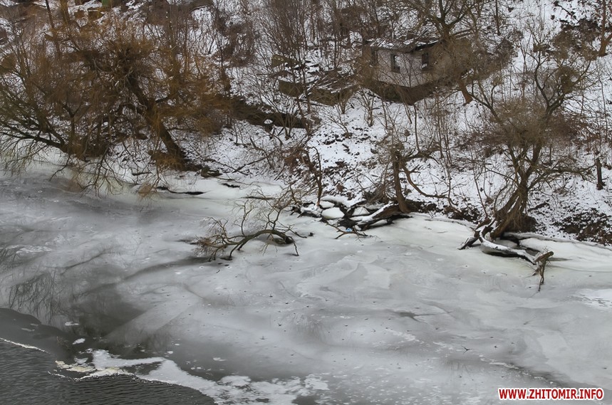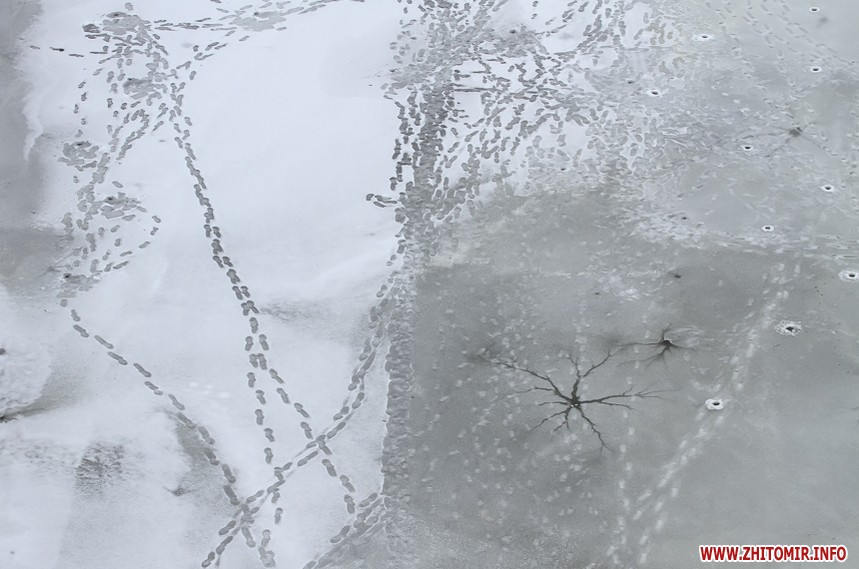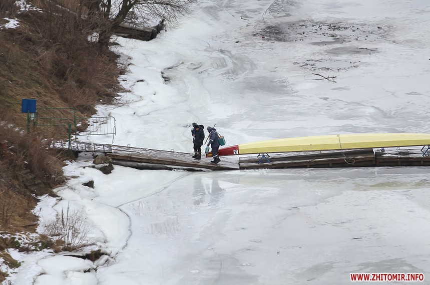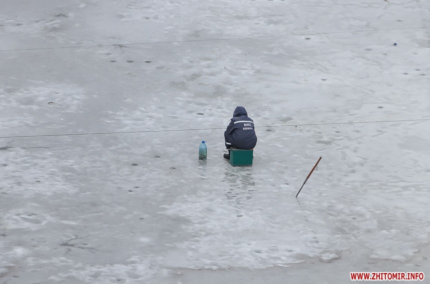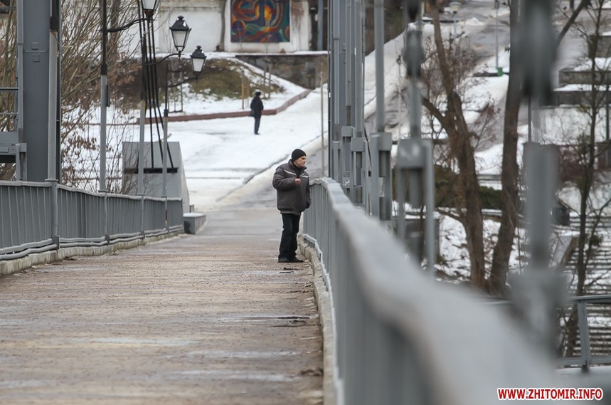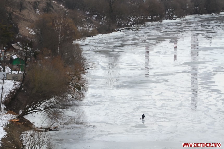 Не зважаючи на плюсову температуру 29 січня, у Житомирі під пішохідним мостом у парку Гагаріна рибалить шестеро рибалок-відчайдухів.