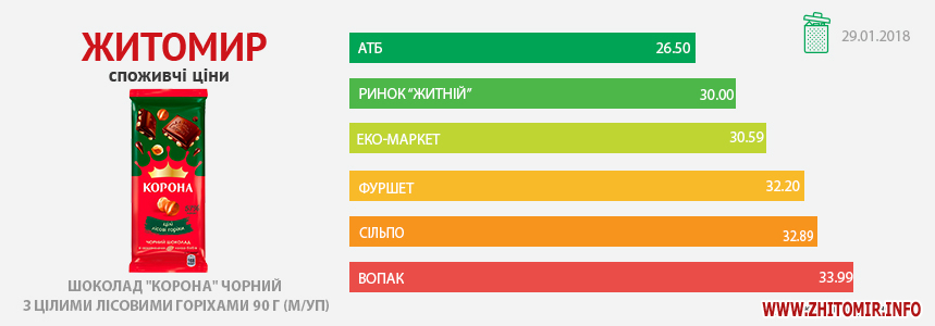 МОНІТОРИНГ ЗДІЙСНЕНО МЕТОДОМ КОНТРОЛЬНОЇ ЗАКУПІВЛІ, У МІСЦЯХ ПРОДАЖУ: AТБ, пр. Миру, 15 А, Ринок "Житній", майдан Житній ринок, ЕКО-маркет, вул. Мала Бердичівська, 2/7, Фуршет, вул. Вітрука, 9 а, Сільпо, майдан Житній ринок, 1, Вопак, вул. Київська, 87.