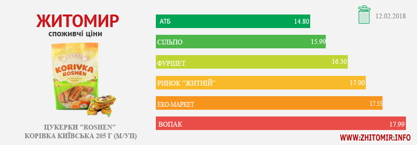 МОНІТОРИНГ ЗДІЙСНЕНО МЕТОДОМ КОНТРОЛЬНОЇ ЗАКУПІВЛІ, У МІСЦЯХ ПРОДАЖУ: AТБ, пр. Миру, 15 А, Ринок "Житній", майдан Житній ринок, Сільпо, майдан Житній ринок, 1, ЕКО-маркет, вул. Мала Бердичівська, 2/7, Вопак, вул. Київська, 87, Фуршет, вул. Вітрука, 9 а.