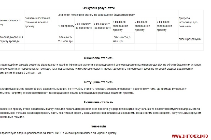 «В Житомирській ОДА спеціально змінили технічне завдання, щоби була можливість реалізувати саме такі проекти. По області ми єдині в цій позиції, конкуренції в нас немає. Уже прийом заявок закінчився, розпочалося оцінювання», – уточнила Поліщук.
