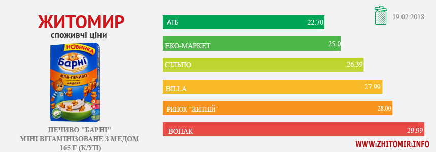 МОНІТОРИНГ ЗДІЙСНЕНО МЕТОДОМ КОНТРОЛЬНОЇ ЗАКУПІВЛІ, У МІСЦЯХ ПРОДАЖУ: AТБ, пр. Миру, 15 А, Ринок "Житній", майдан Житній ринок, Вопак, вул. Київська, 87, Billa, пр. Миру, 15, ЕКО-маркет, вул. Мала Бердичівська, 2/, Сільпо, майдан Житній ринок, 1