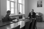 Матвей Владимирович встретил нас на своём рабочем месте в 8 утра. В кабинете было прохладно после утреннего проветривания, техническая работница заканчивала «влажную» уборку, почти бывший заместитель мэра подписывал какие-то документы.