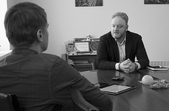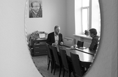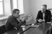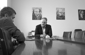 Увидев нас с фотографом, он отложил бумаги в сторону и предупредил, что на разговор у него час – на 9 утра назначено совещание с мэром.