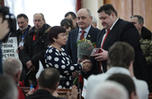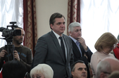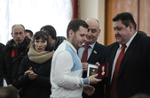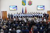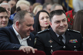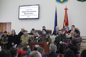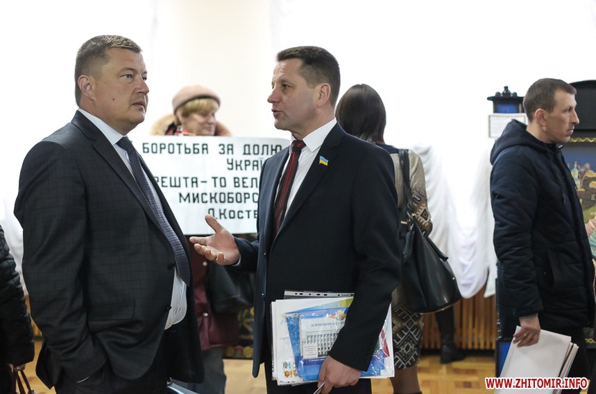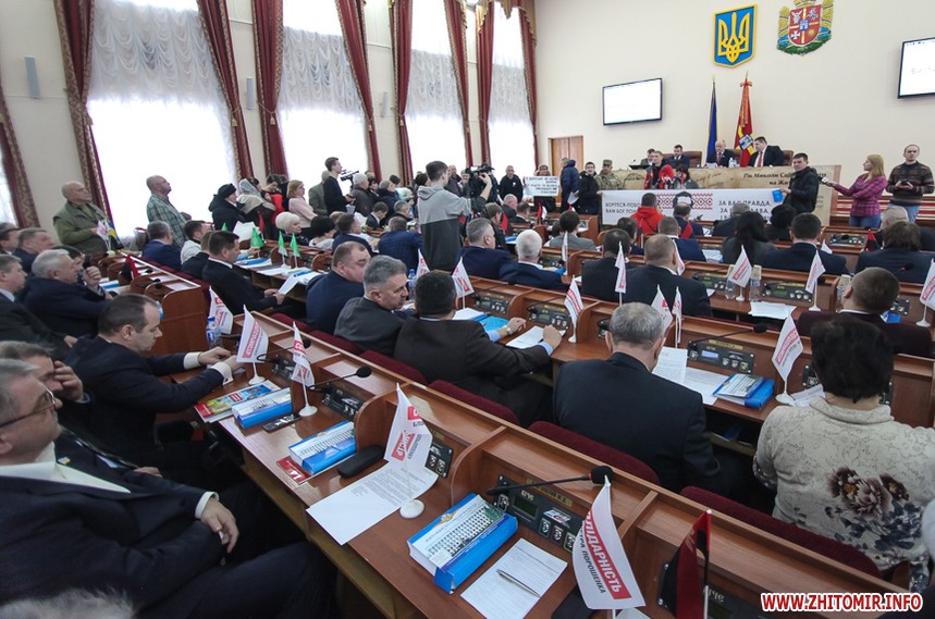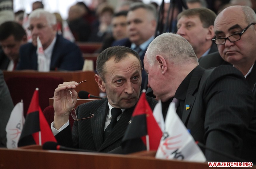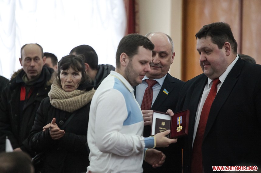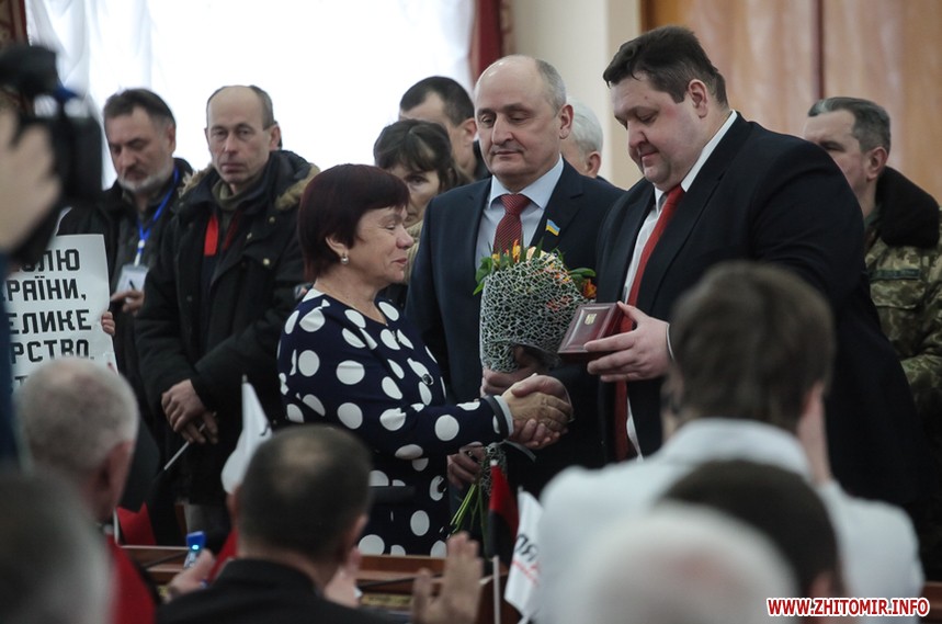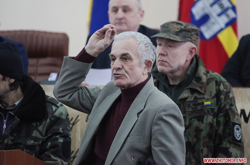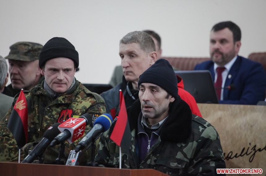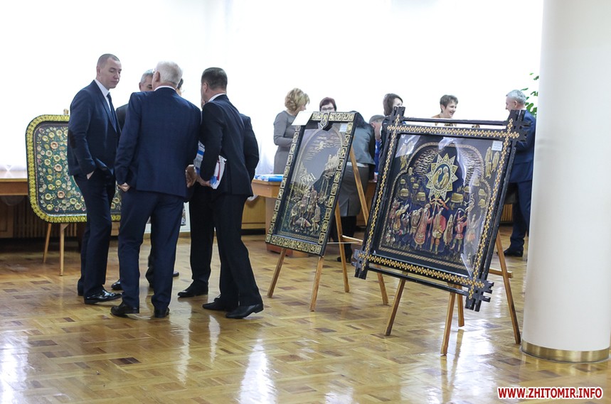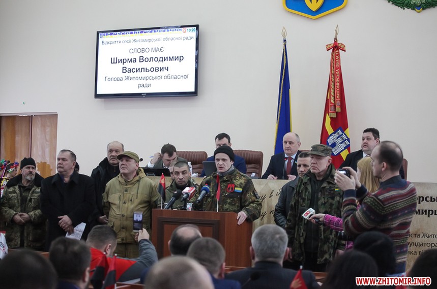 Власне до питань сесії депутати змогли приступити через годину, - після того, як активісти залишили сесійну залу. Голова Житомирської облради Володимир Ширма та голова ОДА Ігор Гундич отримали від командування територіального управління Сухопутних військ ВСУ «Північ» нагрудні знаки «За сумлінну службу». Крім них, ордени та відзнаки отримали ще 13 осіб.