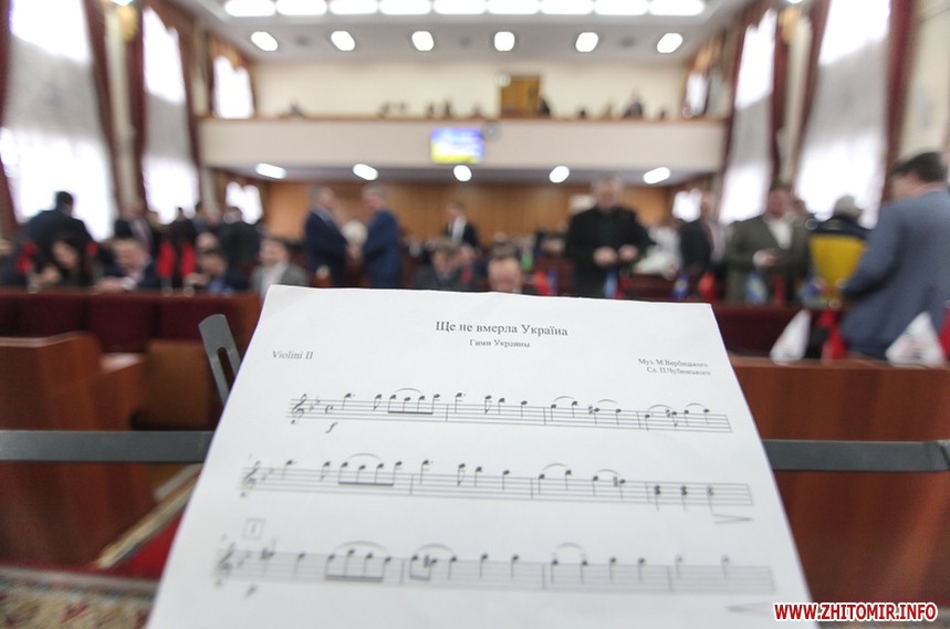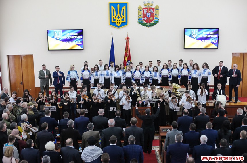 Перша у 2018 році сесія Житомирської облради 7 березня розпочалася зі флешмобу до дня народження Тараса Шевченка: цього разу гімн України виконали студенти Житомирського музичного училища ім. В.С. Косенко під супровід оркестру.