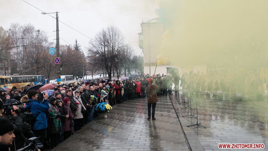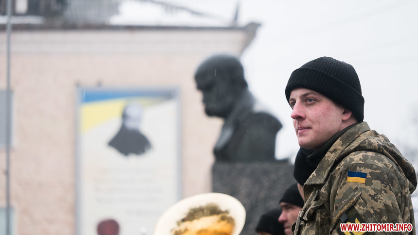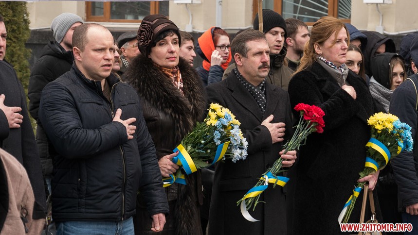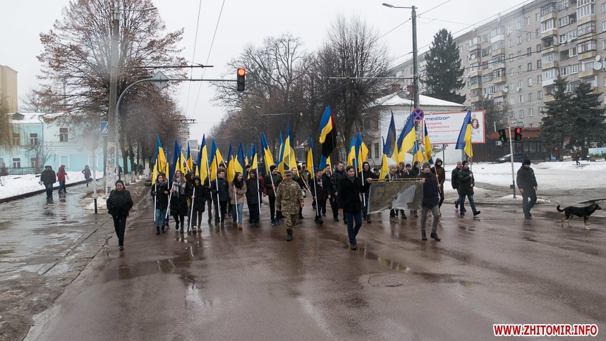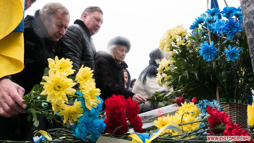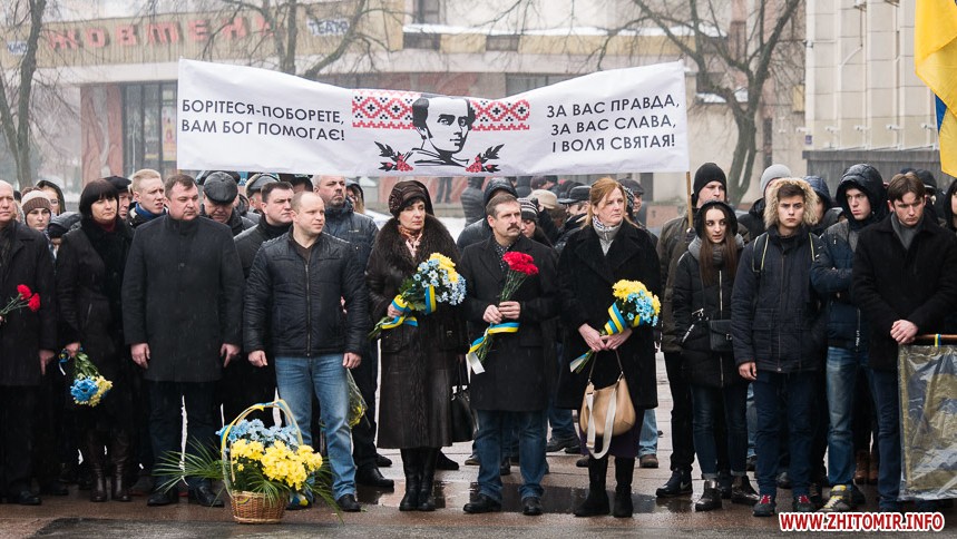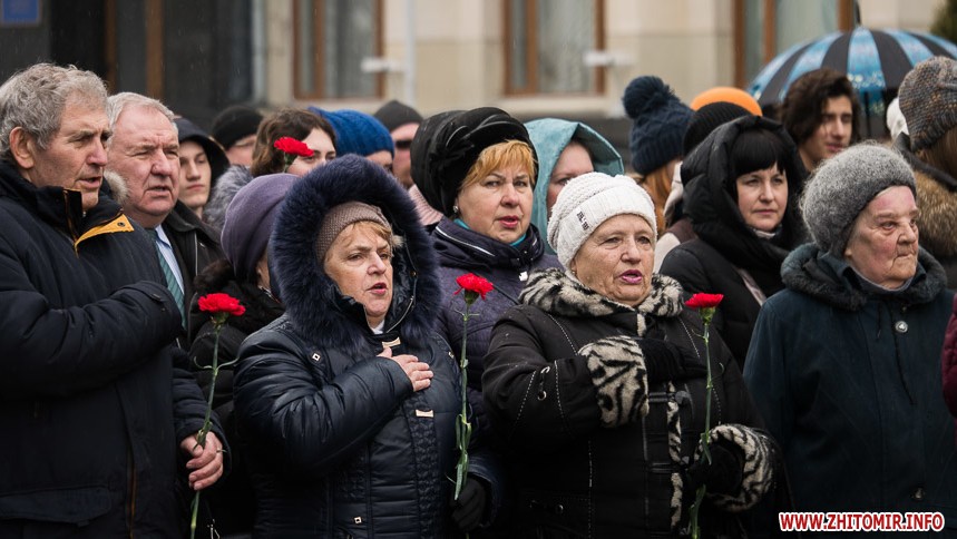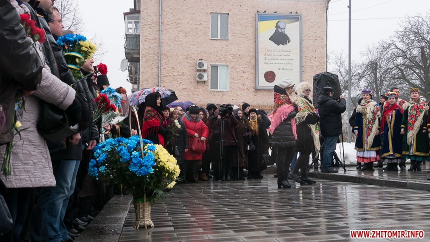 Від майдану Корольова містяни пройшли урочистою ходою по вул. Великій Бердичівській до пам’ятника Шевченку у супроводі зведеного духового оркестру Житомирського військового інституту ім. С.П. Корольова та 95-ї окремої десантно-штурмової бригади. Учасники заходу поклали квіти до пам’ятника Кобзаря.