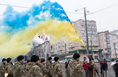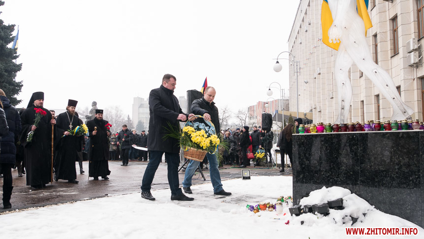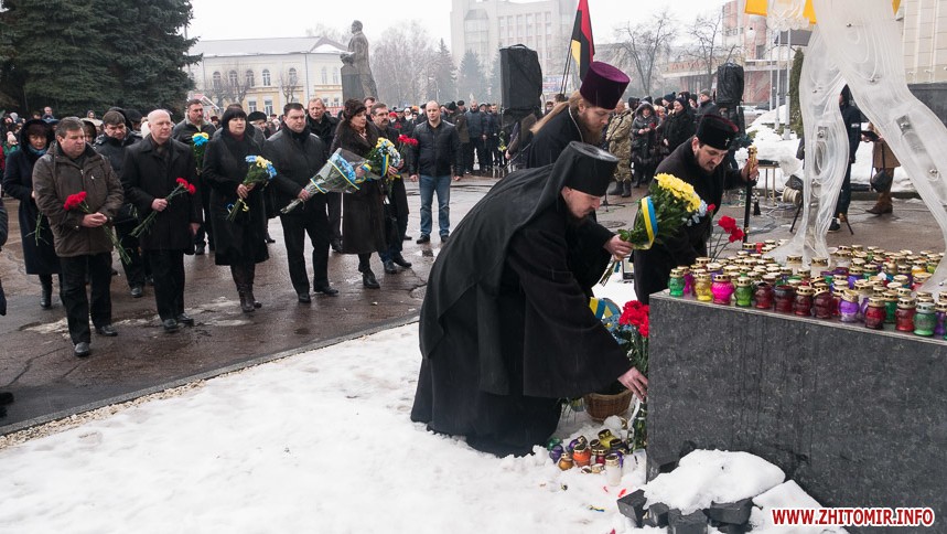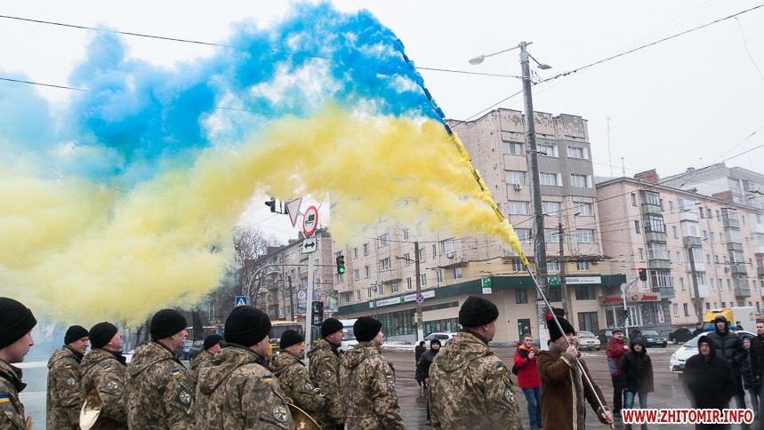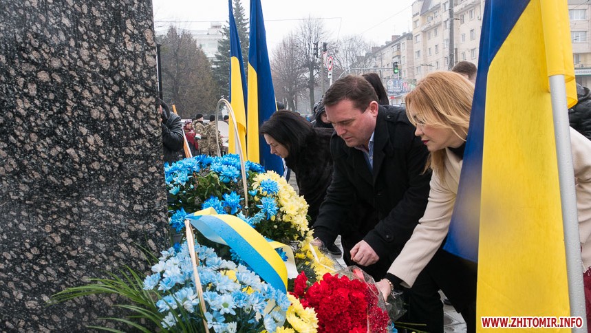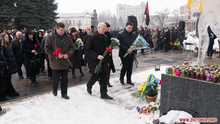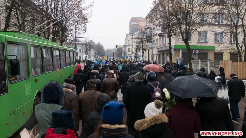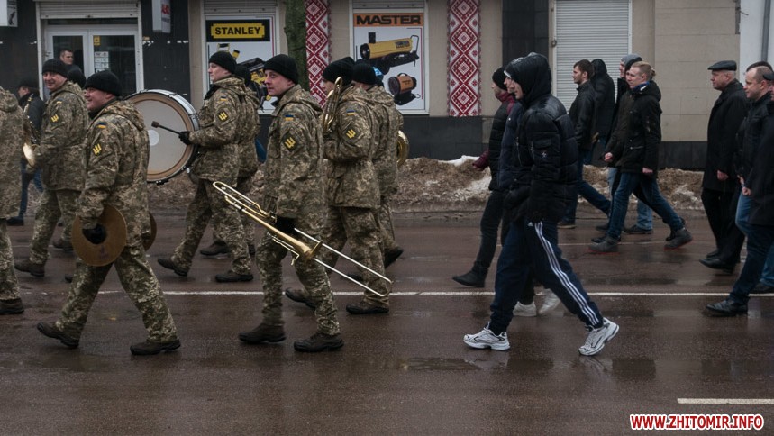 Від майдану Корольова містяни пройшли урочистою ходою по вул. Великій Бердичівській до пам’ятника Шевченку у супроводі зведеного духового оркестру Житомирського військового інституту ім. С.П. Корольова та 95-ї окремої десантно-штурмової бригади. Учасники заходу поклали квіти до пам’ятника Кобзаря.