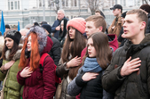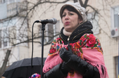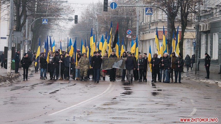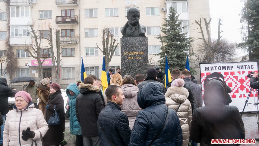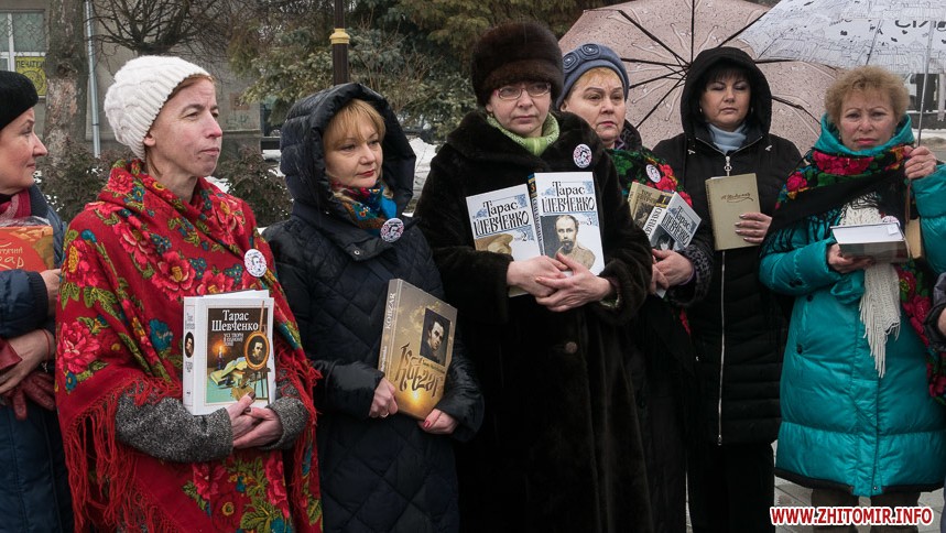 Нагадаємо, зранку, 9 березня, після короткого мітингу біля меморіалу Героїв Небесної сотні та декламації поезії, люди сформували колону та пройшли вулицею Великою Бердичівською до скверу Тараса Шевченка.
