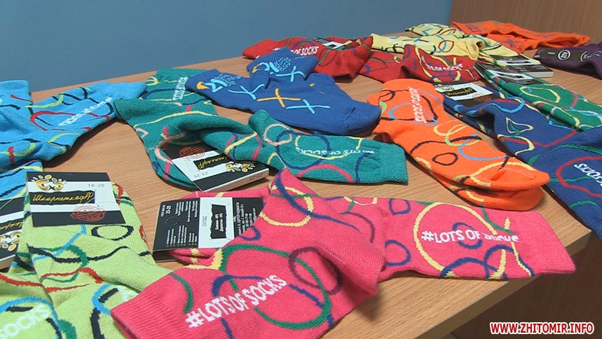 Придбати різнокольорові шкарпетки, щоб взяти участь у всесвітньому флешмобі можна за адресою вул.Мала Бердичівська,4, підлітковий клуб «Пролісок».