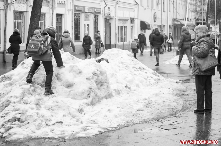 Мокреча, кучугури снігу, понурі двори – так виглядає Житомир 29 березня. Містяни продовжують мріяти про тепло, однак погода й досі не дозволяє перейти на весняний одяг.