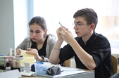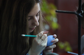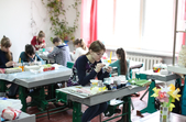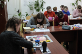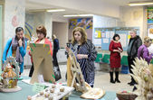«На базі нашого центру 30 і 31 березня проходить обласна виставка-конкурс «Великодні писанки». Це вже 18 виставка, яка проходить у нас в центрі. Проходить вона згідно двох номінацій: мальованки та писанки. У кожній номінації по 3 вікових категорії: 6-10, 11-13, 15-18 років. Сьогодні діти виконують практичне завдання за запропонованою тематикою, а журі в цей час оцінює великодні композиції, які знаходяться на першому поверсі. На виконання практичного завдання дітям відводиться три години», - розповіла методист обласного центру науково-технічної творчості Людмила Гордієнко.