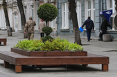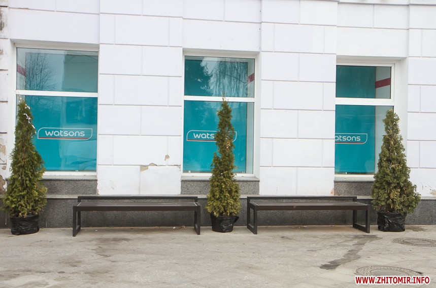 Комунальники вже повернули всі чотири квадратні лавки з вазонами, кілька лавок встановили й біля будинку Трибеля.