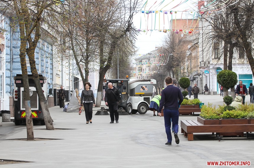 Єдина житомирська пішохідна вулиця Михайлівська чепуриться після затяжної цьогорічної зими.
