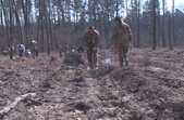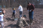 «Знаряддя заглиблюється в грунт, робиться лунка, саджаємо сіянець, опускаємо його глибше для того, щоб коренева система вирівнялася, лунку засипаємо і притоптуємо з двох сторін зберігаючи вертикальність саджанця», - інструктує директор ДП «Житомирське ЛГ» Руслан Карчевський.
