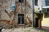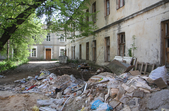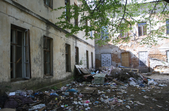 Незважаючи на те, що з центрального боку вулиці ці будинки виглядають сучасними та відремонтованими, у дворі – бур’ян, смітник, пустка та потріскані стіни. Інша половина двору - житлова, тож більш доглянута.