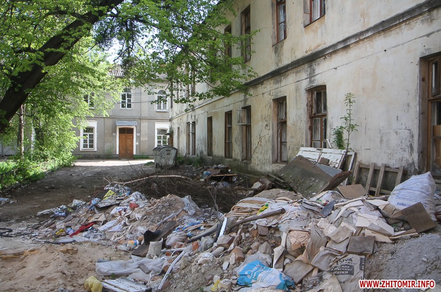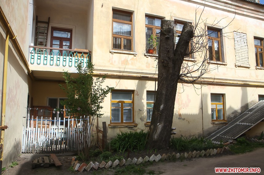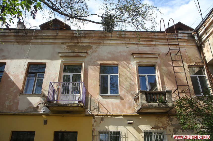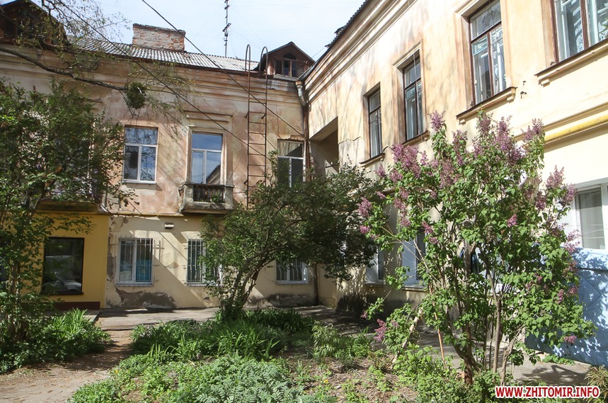 За даними житомирських істориків, це споруди колишнього прибуткового будинку квартирного типу, який здавався в оренду, та готелю, де мешкав український письменник Михайло Коцюбинський.