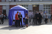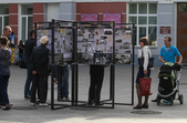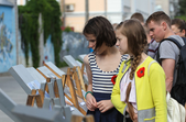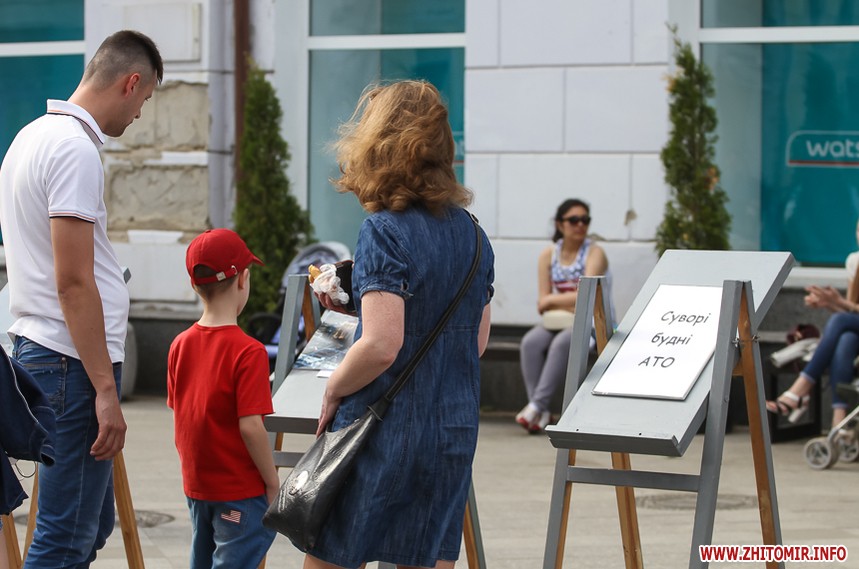 Також на Михайлівській розміщена фотовиставка присвячена учасникам АТО й інсталяція до Другої світової війни.