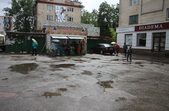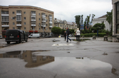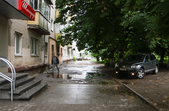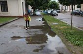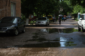 На тротуарах центральних вулиць можна поманеврувати між калюжами, не замочивши ніг, а от якщо звернути у двори, то пройти, не ступивши у воду, майже не можливо.