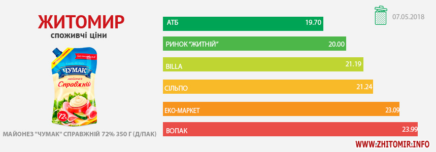 МОНІТОРИНГ ЗДІЙСНЕНО МЕТОДОМ КОНТРОЛЬНОЇ ЗАКУПІВЛІ, У МІСЦЯХ ПРОДАЖУ: AТБ, пр. Миру, 15 А, Ринок "Житній", майдан Житній ринок, Сільпо, майдан Житній ринок, 1 ЕКО-маркет, вул. Мала Бердичівська, 2/7, Billa, пр. Миру, 15, Вопак, вул. Київська, 87