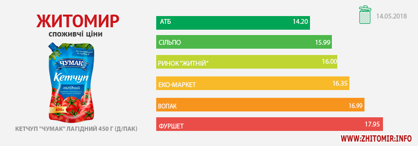 МОНІТОРИНГ ЗДІЙСНЕНО МЕТОДОМ КОНТРОЛЬНОЇ ЗАКУПІВЛІ, У МІСЦЯХ ПРОДАЖУ: AТБ, пр. Миру, 15 А, Ринок "Житній", майдан Житній ринок, Сільпо, майдан Житній ринок, 1 ЕКО-маркет, вул. Мала Бердичівська, 2/7, Вопак, вул. Київська, 87,Фуршет, вул. Вітрука, 9 а