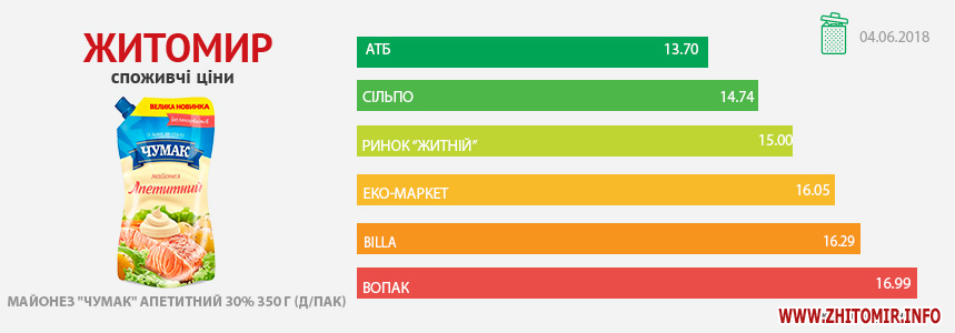 МОНІТОРИНГ ЗДІЙСНЕНО МЕТОДОМ КОНТРОЛЬНОЇ ЗАКУПІВЛІ, У МІСЦЯХ ПРОДАЖУ: AТБ, пр. Миру, 15 А, Ринок "Житній", майдан Житній ринок, Billa, пр. Миру, 15, Сільпо, майдан Житній ринок, 1, ЕКО-маркет, вул. Мала Бердичівська, 2/7, Вопак, вул. Київська, 87