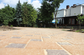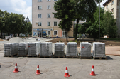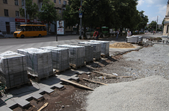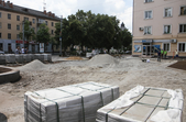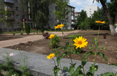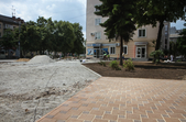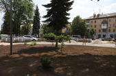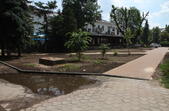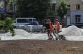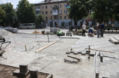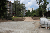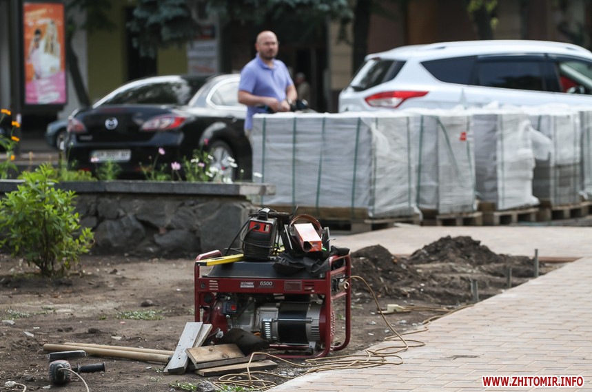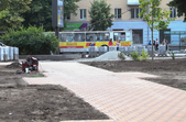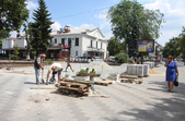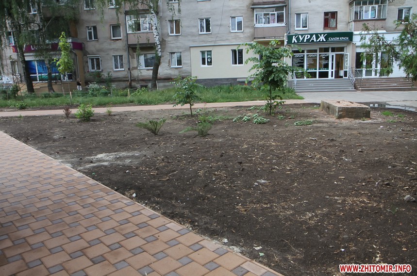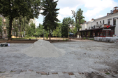 У Житомирі біля кінотеатру «Україна» комунальники облаштовують сквер з лавками для відпочинку.