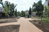 «Наразі поновлене мощення всередині скверу, передбачене встановлення лавок для відпочинку, квіткової арки, централізованого поливу газону, висаджується озеленення, дерева (зокрема вже висаджені клени), зроблене нове світлодіодне освітлення. Також, планом озеленення передбачається інтеграція існуючих клумб, що висадили мешканці прилеглого будинку та підприємці. Зараз роздивляємось варіанти по встановленню садово-паркової скульптури на постаменті, що вглибині скверу. Також будуть встановлені лавки для відпочинку. Виконавцем та замовником робіт є КП «Зеленбуд», - розповів Юрій Безбородов.