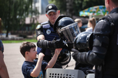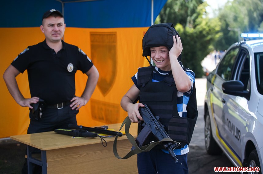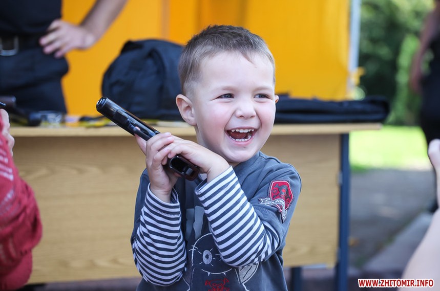 Маленькі житомиряни охоче розглядали предмети, якими користуються поліцейські, а також фотографувалися на згадку.