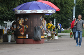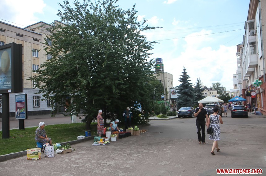У Житомирі на майдані Перемоги, поблизу танка, вже не один десяток років місцеві жителі торгують квітами, цигарками та власною городиною. Неодноразово поліцейські проводили рейди з метою припинення торгівлі тютюновими виробами у невстановлених місцях, вручали протоколи, але, як кажуть: «а віз і нині там!».