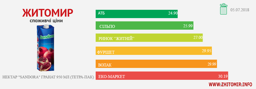 МОНІТОРИНГ ЗДІЙСНЕНО МЕТОДОМ КОНТРОЛЬНОЇ ЗАКУПІВЛІ, У МІСЦЯХ ПРОДАЖУ: AТБ, пр. Миру, 15 А, Ринок "Житній", майдан Житній ринок, Сільпо, майдан Житній ринок, 1,Вопак, вул. Київська, 87, ЕКО-маркет, вул. Мала Бердичівська, 2/7, Фуршет, вул. Вітрука, 9 а
