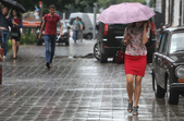 Деяких містян мжичка анітрохи не лякала – вони простували містом, не ховаючись від літнього дощу.