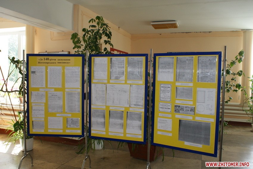 До 140-річчя заснування Житомирського пивзаводу у приміщенні Держархіву Житомирської області підготовлено та розгорнуто стендову виставку архівних документів.