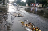 Зокрема, потужний водяний вир утворився і на вулиці Перемоги, неподалік перехрестя з вулицею Лесі Українки. «Роботу» зливостокам значно ускладнювало сміття: пляшки, шматки дощок, а також яблука.