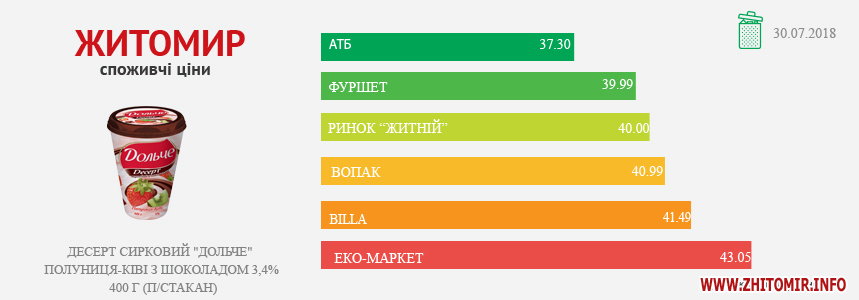 МОНІТОРИНГ ЗДІЙСНЕНО МЕТОДОМ КОНТРОЛЬНОЇ ЗАКУПІВЛІ, У МІСЦЯХ ПРОДАЖУ: AТБ, пр. Миру, 15 А, Ринок "Житній", майдан Житній ринок, Фуршет, вул. Вітрука, 9 а, Billa, пр. Миру, 15, ЕКО-маркет, вул. Мала Бердичівська, 2, Вопак, вул. Київська, 87