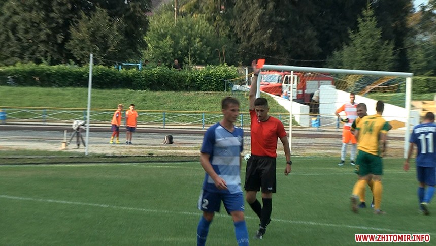 Наприкінці матчу житомиряни опинились у більшості, коли за фол проти Дмитра Демчика, який вийшов на заміну, другу жовту картку отримав захисник «Поділля» Владислав Гресь.
