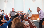 Після звіту Нікітіна про роботу водоканалу почалися емоційні виступи активістів, які дорікали йому за неякісну воду, відсутність фахової освіти, наполегливо вимагали звільнити керівника водоканалу і говорили, що місцевий кандидат на його місце вже є. Житомирська міська рада вела пряму трансляцію, і всі охочі могли дві години онлайн слідкувати за суперечками та задавати питання керівнику одного із стратегічних підприємств міста.