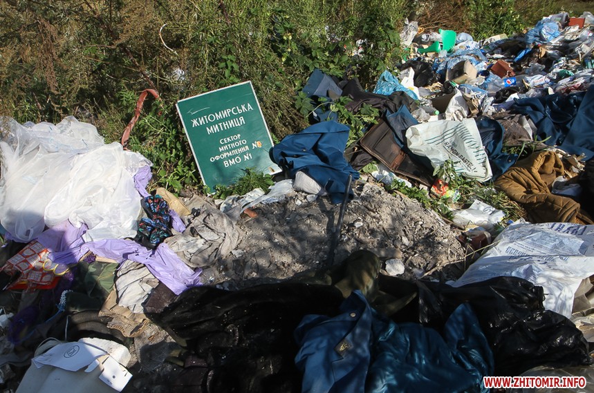 Третього вересня до редакції Житомир.info звернулася житомирянка, яка в районі Мар’янівки, на несанкціонованому сміттєзвалищі виявила близько п’яти кітелів митників та табличку «Сектор митного оформлення №3». Також жінка погодилася відвести фотокореспондента Житомир.info на смітник та показати знайдене.