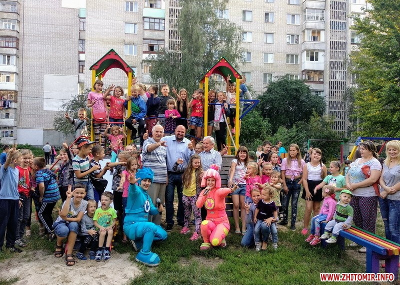 Житомиряни, які живуть поруч встановленого майданчика, влаштували справжнє дитяче свято – аніматори розважали дітей конкурсами та іграми.