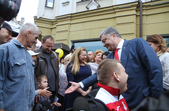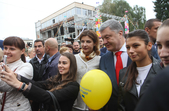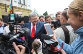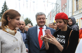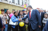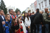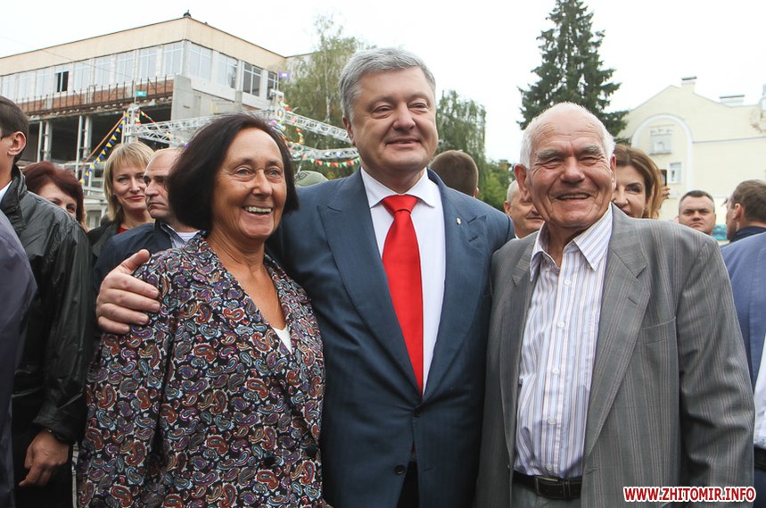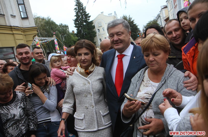 «У нас весілля було 34 роки тому, і кажуть, що це бурштинове весілля. Ми думали, де їхати святкувати бурштинове весілля? Запропонували, щоб в Житомир. Виявилося – фантастичне свято в Житомирі. Чому воно є фантастичне? Бо ви є найкращі! Я хочу подякувати всім вам за гостинність, і дощ, навіть, нам не заважає. Бо дощ – то до удачі», - сказав Петро Порошенко.